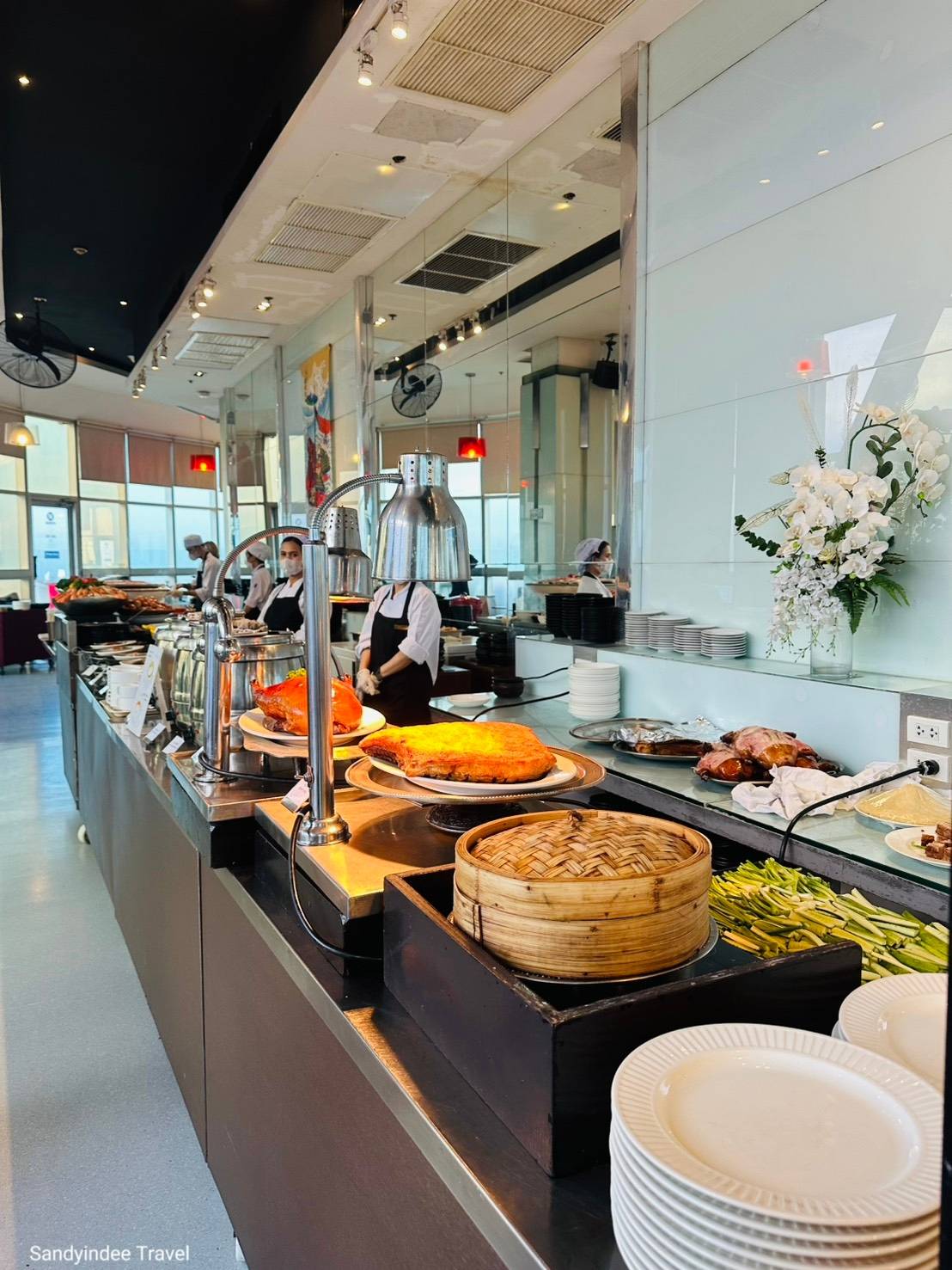 Enjoy the long array of international buffet, seafood, Chinese, Japanese, Shabu, grilled steak, the top hits of Baiyoke buffet, grilled jumbo river prawn, roasted Peking duck, crispy pork, oyster, Wagyu Sushi, Baiyoke signature savory, sliced Wagyu beef and Kurobuta pork Nam Tok Shabu, Grilled River Prawn with Spaghetti Pesto Sauce, Norwegian salmon, Sashimi and sushi, truffle soup, lobster bisque and many more.